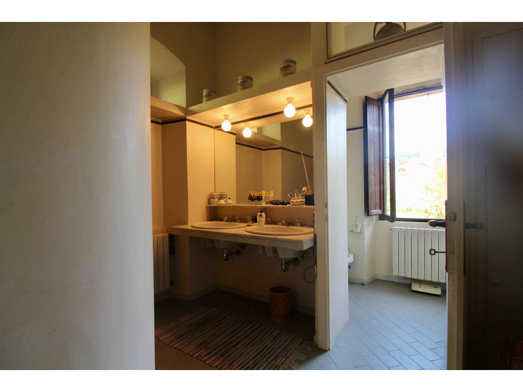 Una scalinata con ringhiera in ferro battuto e legno conduce ai piani superiori: al piano primo si trovano 3 camere da letto matrimoniali, 2 bagni, spogliatoio; piano mansarda con altezza minima 1,95 metri.