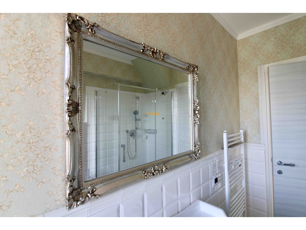 Il piano seminterrato di circa 250 mq è composto da un'ampia autorimessa di circa 130 mq, una lavanderia, bagno di servizio e un rustico da rifinire. Il giardino esterno di circa 3000 mq circonda la casa e sono presenti circa 20 ulivi. C'è inoltre la possibilità di fare un pozzo. La casa è dotata sia di fotovoltaico che di solare termico.